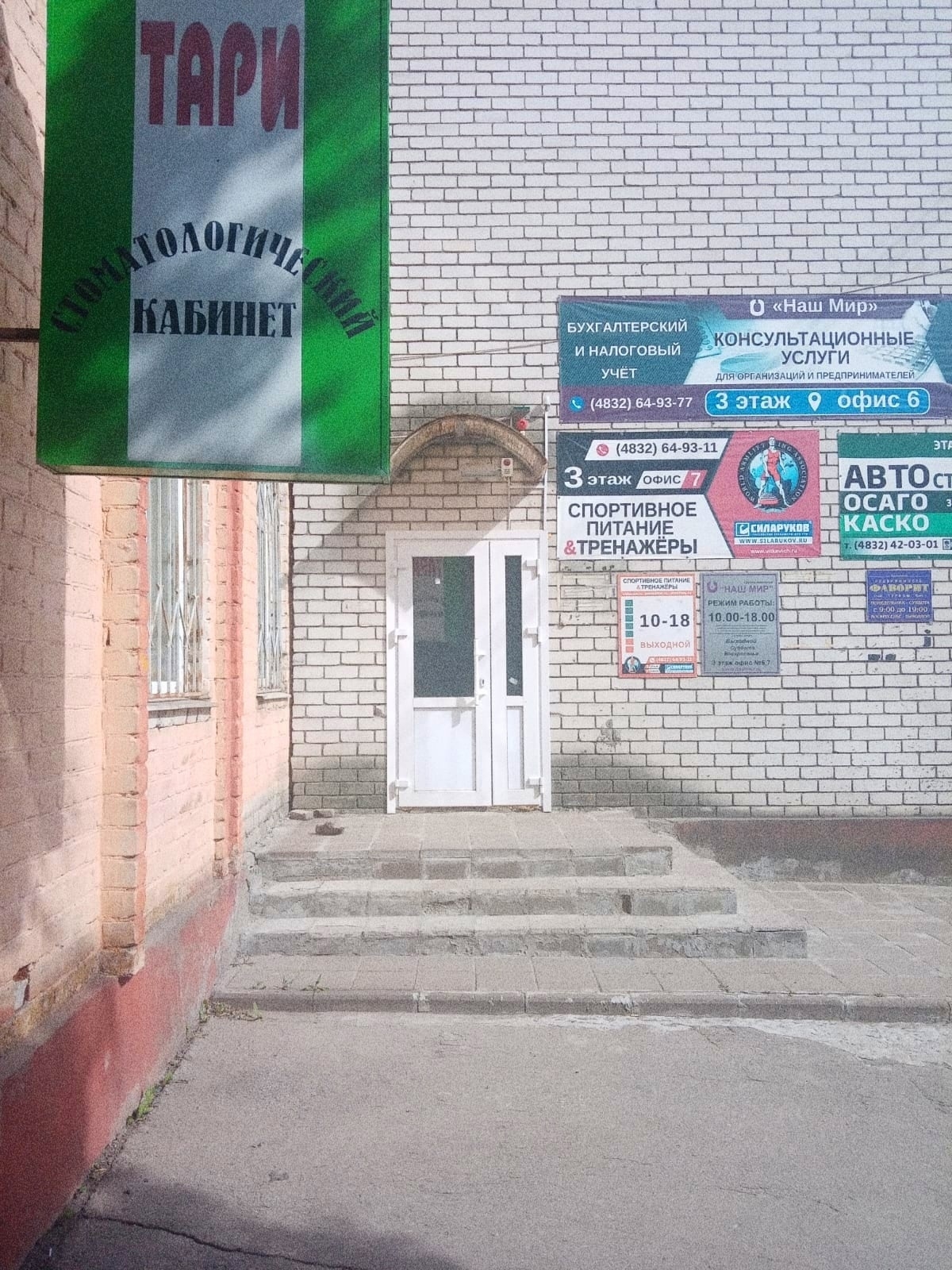 На фото центральный вход в здание и вход с торца.